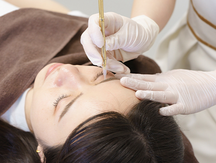 麻酔クリーム塗布後、専門の施術者による施術をおこないます。