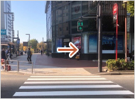 2.出口をでてすぐ左手にある信号を渡り、左に曲がります。